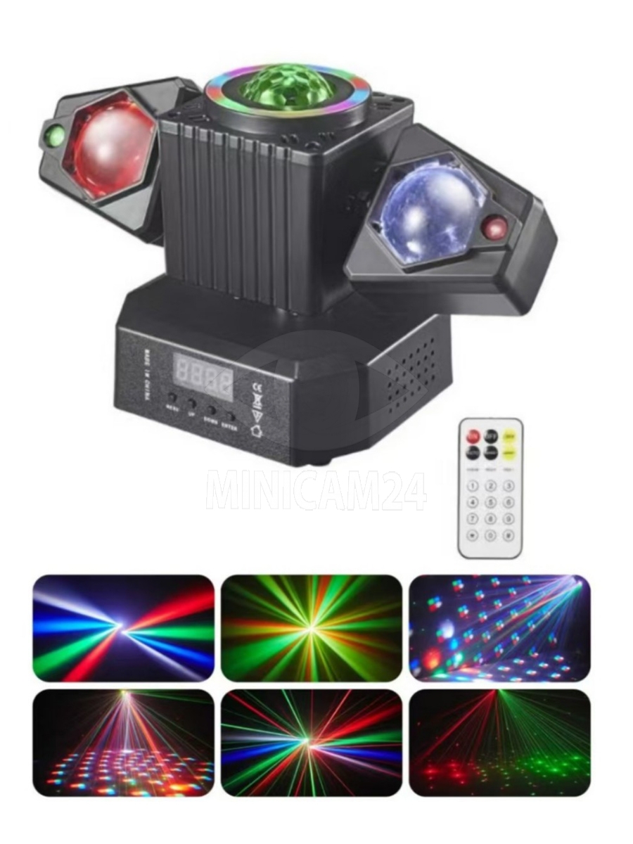 Лазерный проектор - дискошар музыкальный Party Light Box с пультом (RGB laser, LED, 120°)
